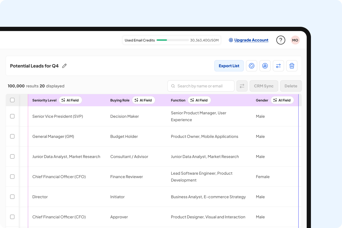 The challenge isn’t collecting data anymore; it’s understanding it. That’s what AI fields fix. They add missing context — Buying Role, Function, Seniority Level, and Gender — so every record tells a clearer story.