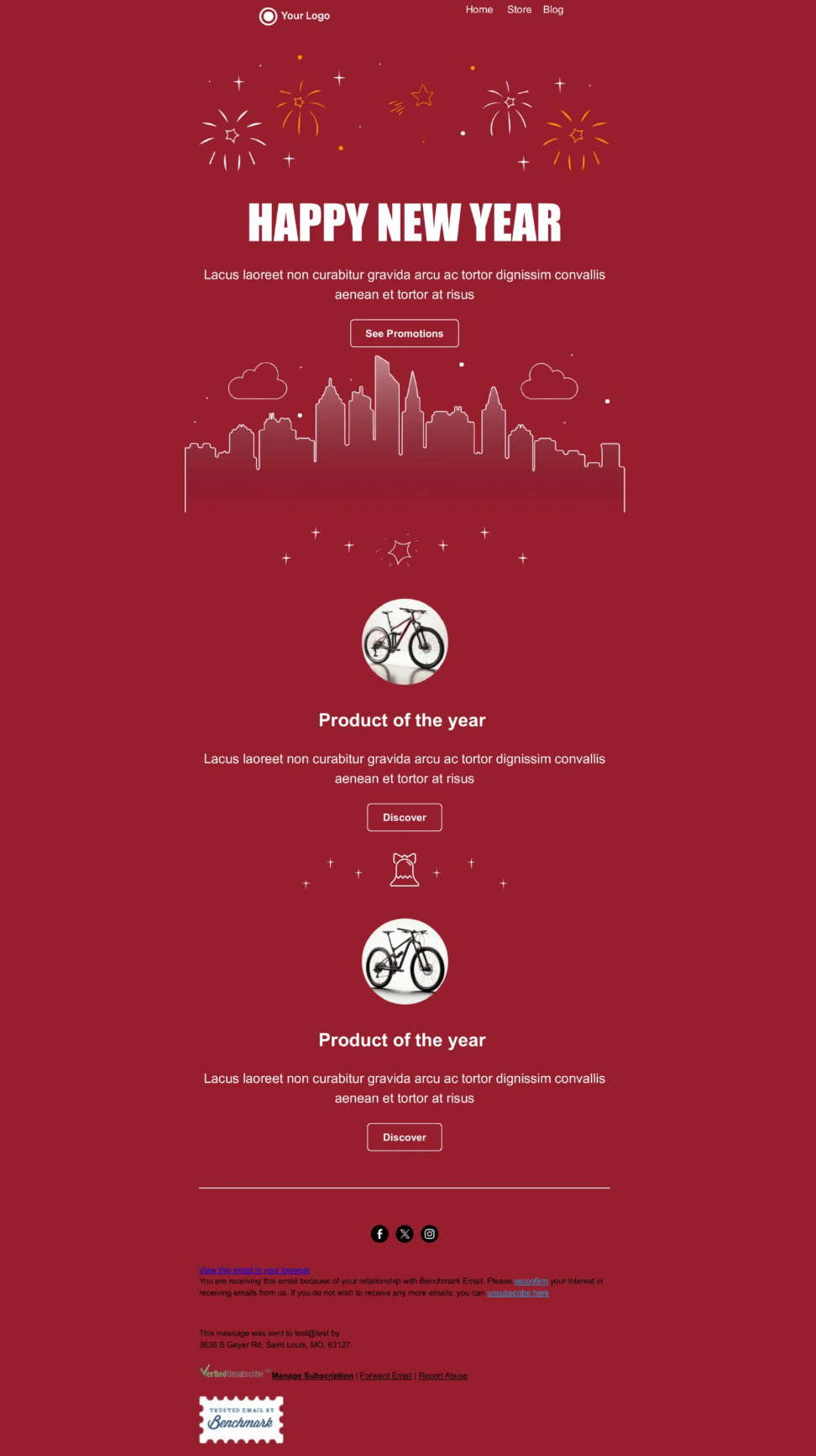 Below is a simple but elegant holiday email template from Benchmark Email.