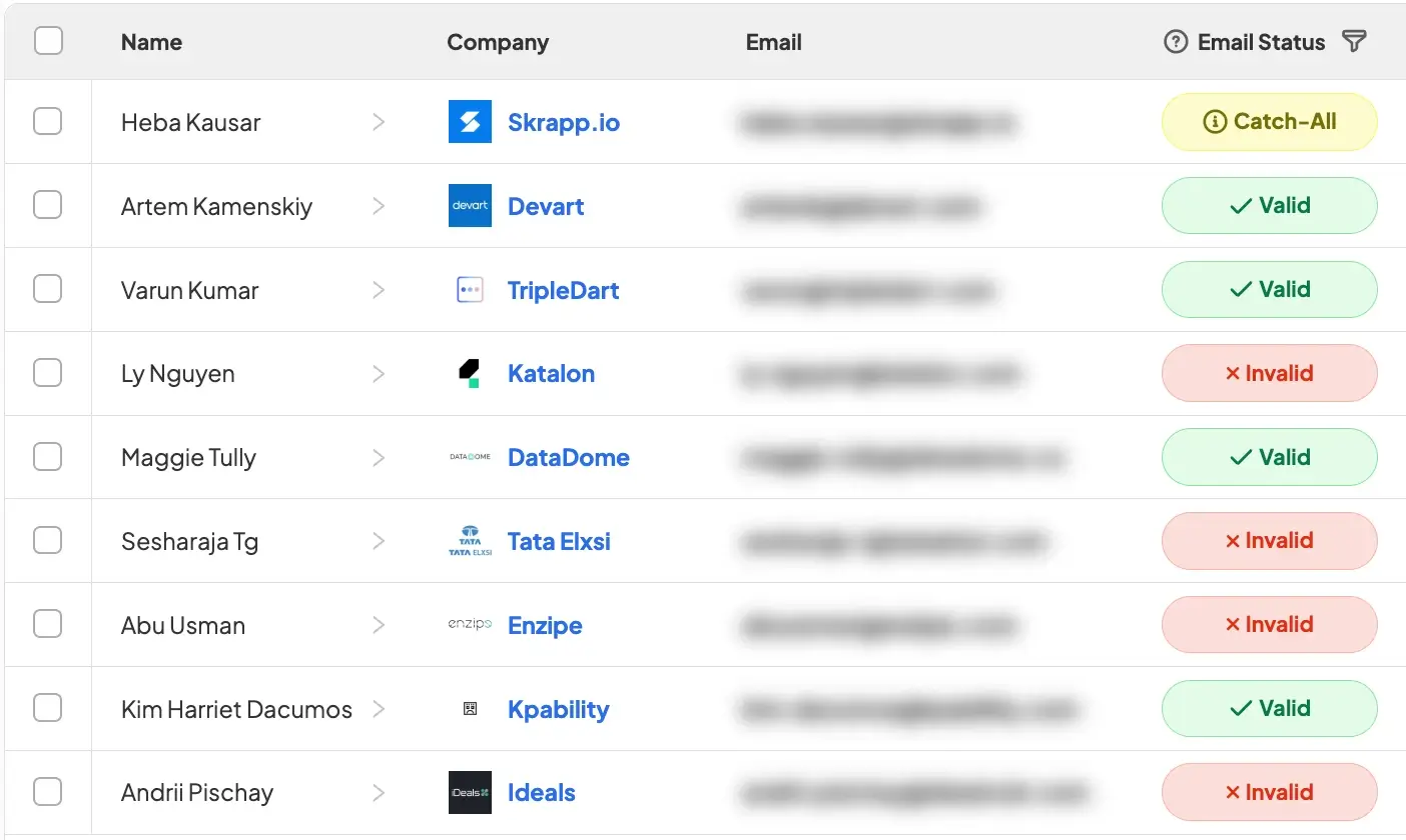 While Sales Navigator offers advanced filtering options, it doesn't include direct email addresses. Pairing it with the Skrapp extension lets you pull verified business emails from your filtered profiles and build a verified contact list ready for outreach.